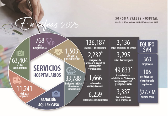 Tal como se indica en el Informe Anual Comunitario de 2025, el Sonoma Valley Hospital proporcionó un volumen importante de servicios esenciales el año pasado, incluyendo: